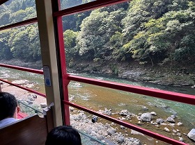 みんな普段見る事のないトロッコ列車に乗り、綺麗な保津川を堪能しました。